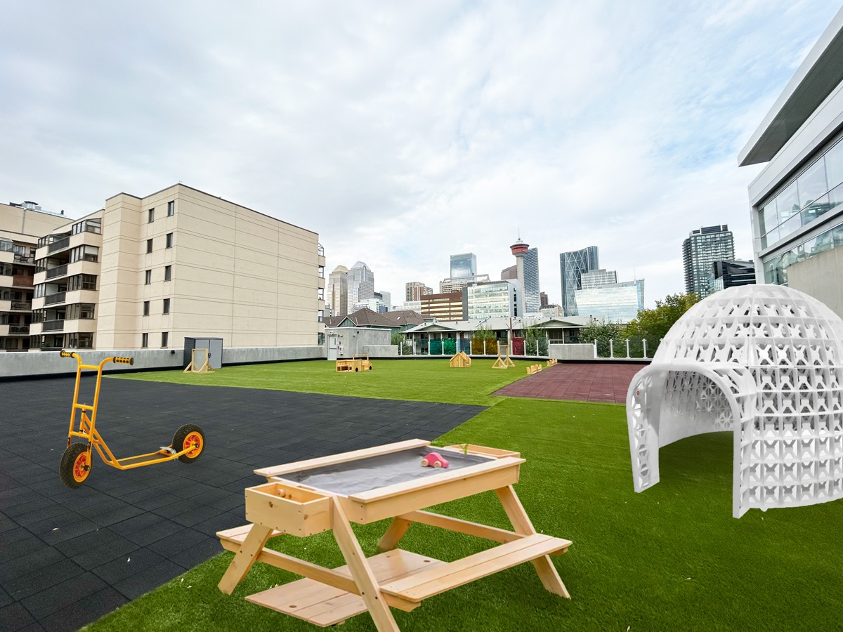 - Spacious gated outdoor play area with naturally-inspired playscapes